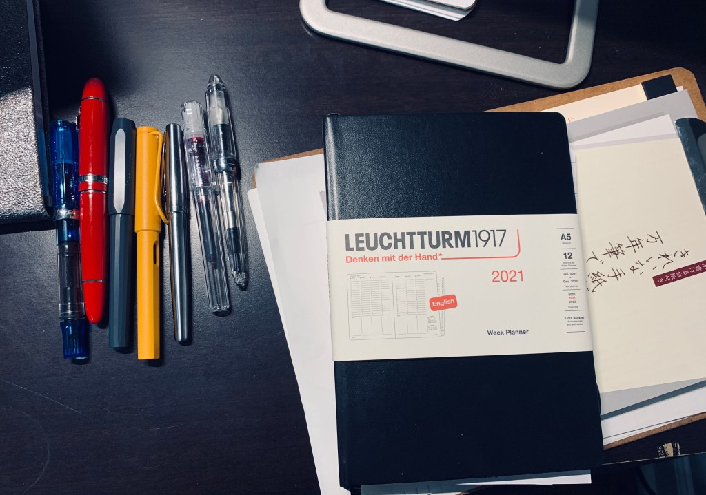 So I ended up buying a LEUCHTTURM1917 Weekly Planner on discount. I like that you have the week at a glance when you open it up; the book stays open, and the paper is great with anything you throw at it. Well—I haven’t tried something like a brush pen.
