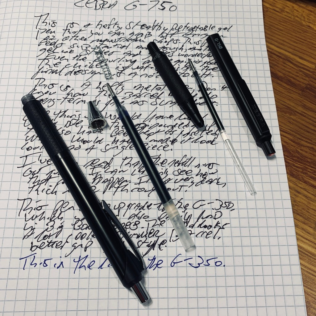 I’ve been on a bit of a Zebra pens kick lately. They’re easy to find at your regular big box store, and there seem to be more models easily available all of a sudden. My most recent buy is the Zebra G-750 retractable gel pen.