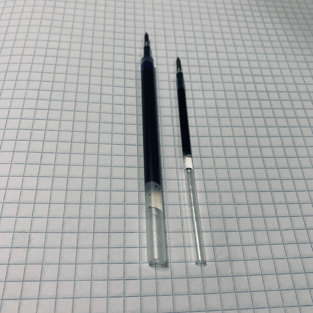 I’ve also read that the refill can run out quickly. I can certainly see how that could happen. It lays down a very dark, thick line from Zebra’s thin JK refill.
