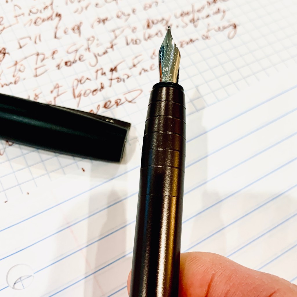Well, look. I’ve been using fountain pens since just April 2020. I’m a pandemic fountain pen baby and still a noob in these matters. But I can say with no small amount of shame that in that short time I have purchased many of your usual suspects in the $5-$50 range—Safaris, TWSBIs, Pilot MRs, Kaweco Sports, etc. I have two gold nib pens that I love in the Platinum 3776 <B> and a Sailor 1911S <M>. And none of these pens have a nib that made me feel as immediately giddy from the jump as this LOOM medium tip.